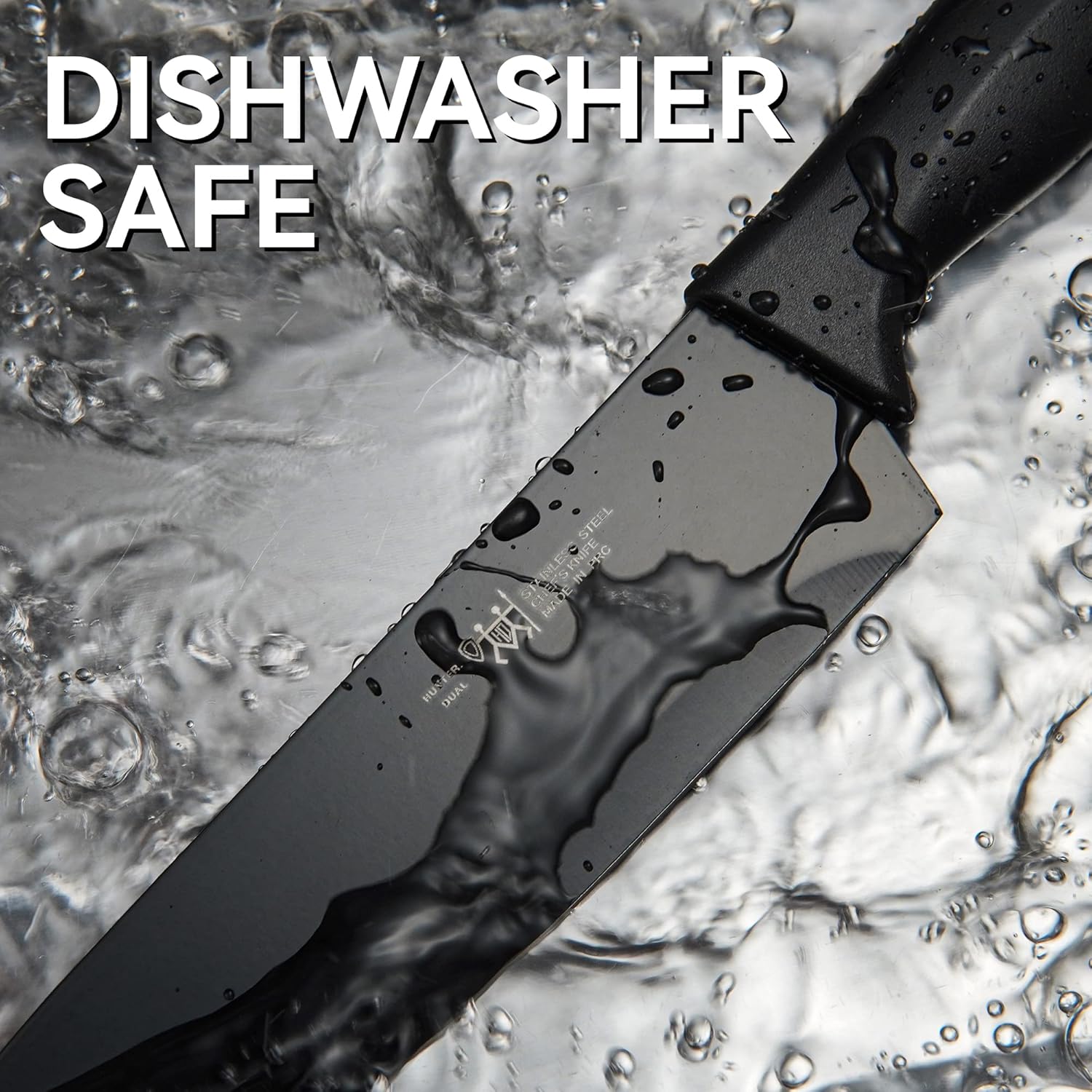 Knife Set, HUNTER.DUAL 15 Pcs Kitchen Knife Set with Block Self Sharpening, Dishwasher Safe, Anti-slip Handle, Black